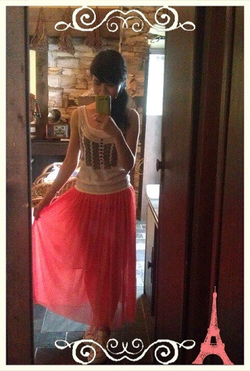 (Day 2 白色塗鴉背心+橘點點長裙+convers 球鞋