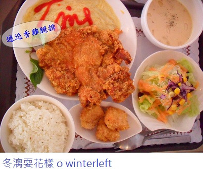 主菜是被兩大片杏鮑菇包圍的雞腿排XD