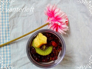 4.水果擺完後,在最上端請灑一把蔓越莓果乾~完成。